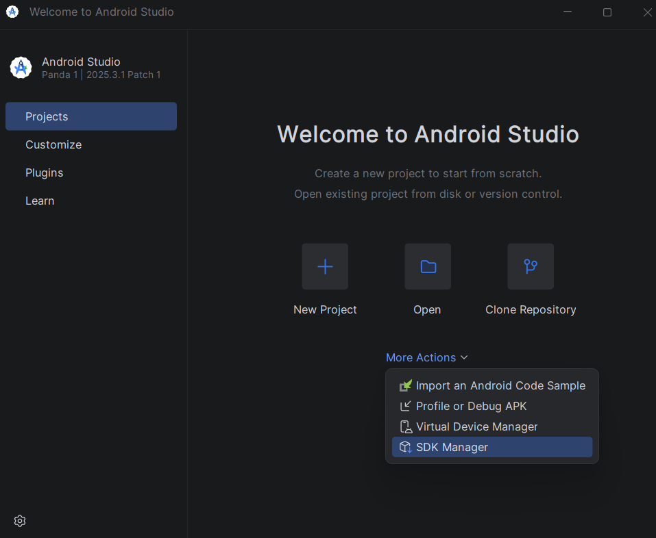 - Click More Action and choose SDK Manager