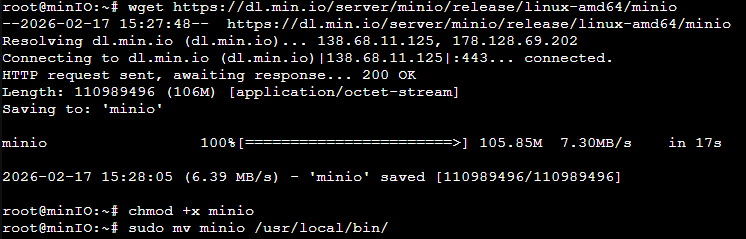 sudo mv minio /usr/local/bin/